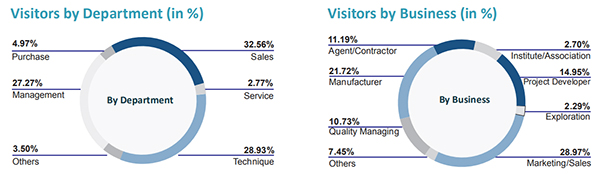 More than half of the visitors are from management and technique departments, which ensures the professionalism to a great extent. Meanwhile, most of the visitors are manufacturer, marketing/sales and project developer who hold and familiar to the latest product, information and trend of the whole industry and are also the desired targets of the exhibitors.