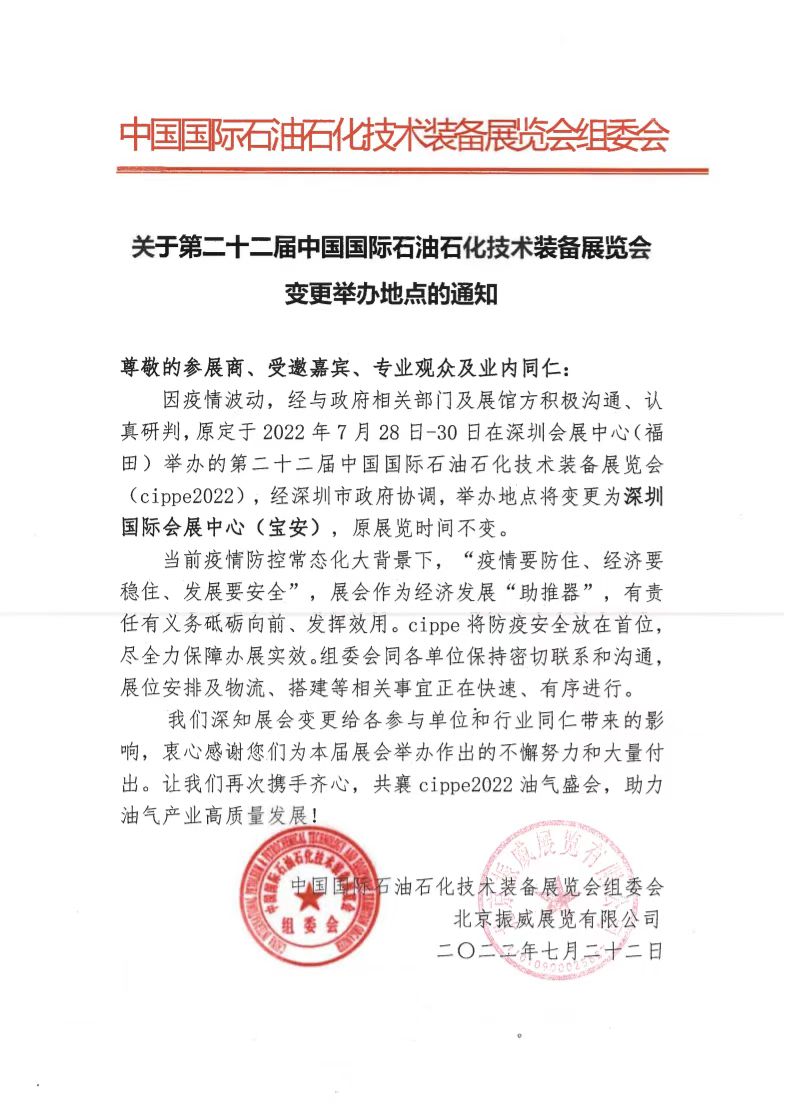2022-07-29精彩续杯!7月28-30日深圳国际会展中心(宝安)迎来又一场专业展会一年一度的世界石油天然气大会cippe振威国际石油石化展五万平米规模、八大主题展览十四大产业板块细分联动全球市场,提振行业活力国内外千家油气上下游企业盛装亮相作为全球油气行业品牌展会,cippe洞悉油气产业发展走向,以展会平台资源优势,汇集业内前沿科技.........【详情】