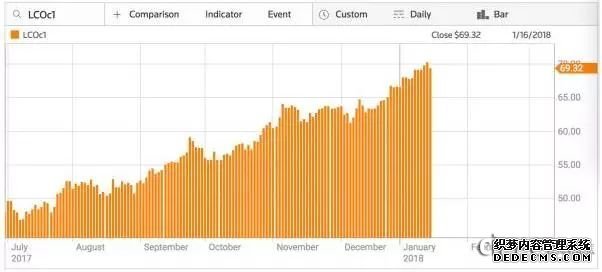 2018年,国际油价的亮眼表现还在持续。截至1月16日,2月交割WTI原油期货价格也一路上涨,达到64.5美元/桶,3月交割的布伦特原油期货价格一度涨破70美元/桶,双双创下三年以来的较高水平。