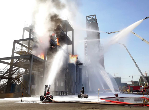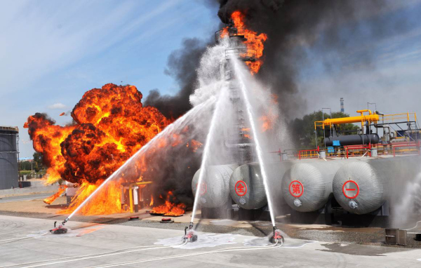 ◆远程控制中倍泡沫炮回转、俯仰,流量大、射程远;