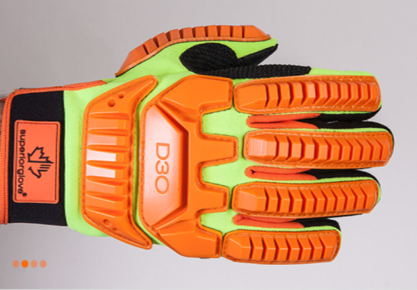 目前D3O 已应用的领域:军士防护,工业防护,消防,GP 摩托车运动,F1 及房车比赛,滑雪运动,极限运动等领域应用了D3O 材质表层的“极限”消防员抢险救援手套,对比同类型的抢险救援手套,其对钝器伤害防护性,提高了45%,即便是在寒冷的冬天(-26℃),D3O 的防护性也仅下降8%,指尖、手掌部补强区采用聚氯乙烯材质,极大的提高了摩擦系数和抗磨性能,手套整体采用Kevlar®凯夫拉材质,增加磨损强度,魔术扣背面人性化的设置了ID 识别区,便于区分使用者,防止错取。出厂设置尺寸可选:S~2XL,符合ANSI3 级防护认证。