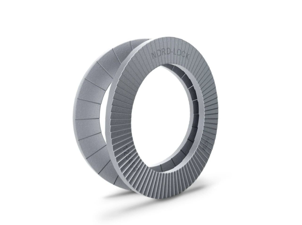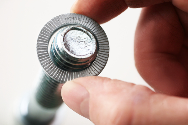 1982年洛帝牢集团发明了Nord-Lock楔形制锁垫圈,洛帝牢防松垫圈是利用楔形齿面的机械结构增加预紧力防止螺栓松动,而不是依靠增加摩擦力。因此在剧烈振动环境中也可确保螺栓防松功能。Nord-Lock防松垫圈已被广泛应用于轨道交通、风电、化工、机械制造等众多领域,产品性能经过了几十年的行业验证。