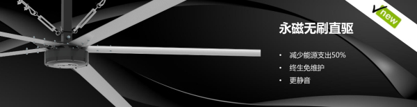 奥宝杰基于核心技术“永磁无刷电机”,开创国内首例7.3米“永磁无刷节能风扇”,Apogee Electric ® 。吊扇直径7.3米,转速10-60转无极调速,产生超大风量能有效的推动大量的空气流动,使空间形成运动、循环气流场。核心技术采用世界领先的永磁无刷电机,能效标准达中国一级能耗/欧洲IE4,平均1小时1度电。产品提供便捷的人机交互界面:数字化面板,直接显示转速、调速、正反转一键搞定。广泛应用于工业厂房、物流仓库、展览馆、体育馆、大型餐厅、候车厅、机场、畜牧场等大型场所和高大空间。