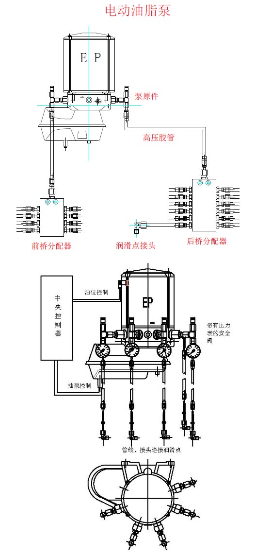 自动集中润滑系统,专门针对压裂车等重载车辆开发,包括多口电动油脂泵,液力端集中润滑装置,更加适合设备的安装使用,更加适应设备使用环境。