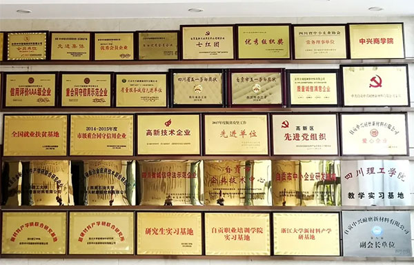 公司长期致力于技术领先、质量提升、装备改进和管理创新,通过了质量、安全、环境和武器装备质量体系认证、逐步形成了制造型企业标准化、规范化的生产优势,确保了产品质量的稳定性和高品质性。公司坚持“精益求精,追求卓越”的管理理念,精细管理卓具成效,先后荣获“国家高新技术企业”、“全国助残先进集体”、“四川省企业技术中心”、“全国就业扶贫基地”、“四川省五一劳动奖状”、“四川省先进党组织”、“四川省绿色示范工厂”、“四川省诚信守法示范企业”、“自贡市五一劳动奖状企业”、“自贡市精准扶贫先进单位”、“自贡市先进党组织”、“自贡市抗疫先进党组织”等多项国家、省、市荣誉。