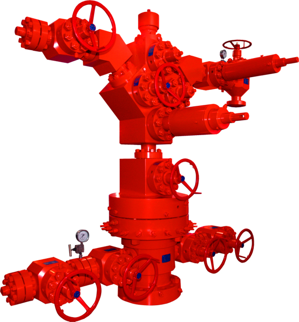 油管四通侧出口内配有阀拆卸堵,可带压更换两侧闸阀。
