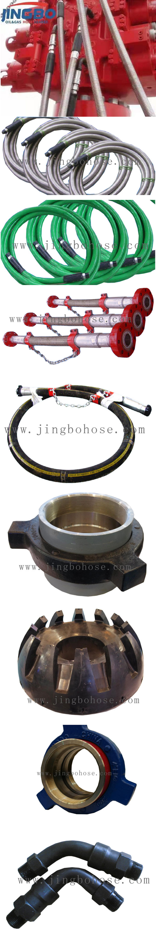 景渤公司主要生产、销售:陆地及海洋用水龙带(钻探胶管),柔性节流压井管线,控制系统用高压耐火隔热软管总成,柔性高压复合输送管,快速接头,高、中、低压由壬,BOP胶芯,金属软管,各类液压软管等石油机械产品及配件。