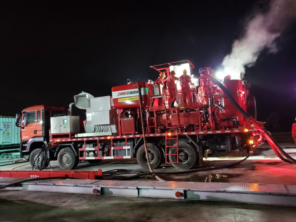 2020年6月28日,世界首台陆地电动固井车在四川威远页岩气田完成首口井固井施工作业,设备运行稳定,固井质量优良,工业试验取得圆满成功。