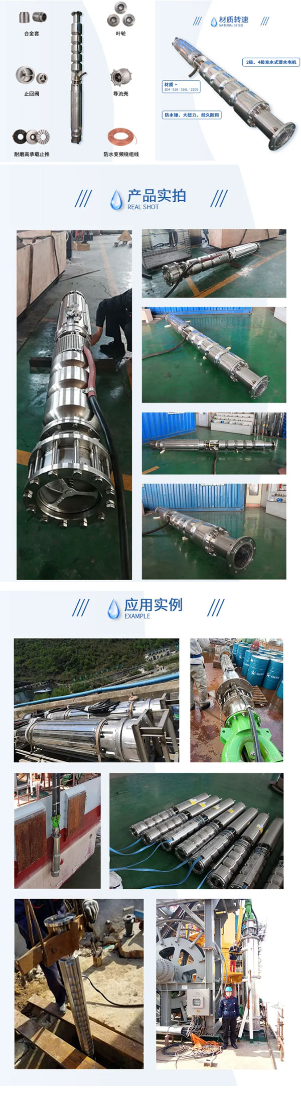 奥特泵业生产的潜水泵多用于满足海洋石油平台的消防,海水抽取及冷却需求等,接受贴牌生产及客户定制。在潜海水电泵产品领域不断扩展自己产品种类,同时贯穿整个系列的高科技技术,让奥特泵业的潜水电泵、潜油电泵达到世界先进高质量行列;并坚信奥特泵业电泵技术会不断提升现有生产的效率。