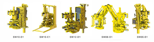 智能铁钻工一直是捷杰西的明星产品,拥有专利技术的连续链式旋扣钳和快抓管钳式冲扣钳结构,有效解决了旋扣机构 对管体的损伤,可以自适应不同管具尺寸,能够最大限度地减轻钳牙对管具接头的损伤。依据客户的需求,推出了配备机器视觉 技术的全自动铁钻工,上卸扣时间缩短至20秒以内。结合不同平台的工况,推出了适用于海洋平台的轨道式铁钻工SW10-E1、适用 于车载/拖挂钻机的SW06-D1,适用于80/90超深井钻机的SW12-D1等。