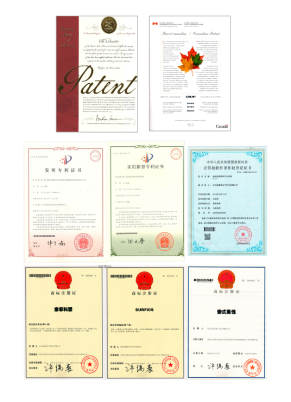 索菲科思获得国家级高新技术企业认定及“双软”企业认证,拥有发明专利11件,实用新型7件,软件著作权3件 ,美国专利2件,加拿大专利2件,且所有知识产权均拥有国家商标权。