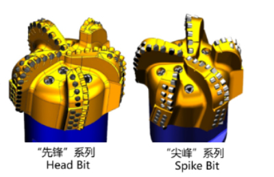 ▲“锋”系列PDC钻头:“尖峰” PDC钻头采用尖斧齿切削结构,对致密泥岩、膏岩、硬塑性等难钻地层具有较强适应性,破岩效率 较常规金刚石钻头有显著提升;“先锋” PDC钻头采用双曲斧形切削结构,对硬地层及硬夹层具有较强适应性,破岩效率及钻头寿命较 常规金刚石钻头有显著提升。