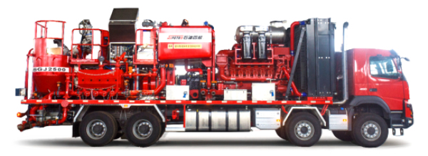 ▲2500型大功率固井车:主要由重载底盘、动力系统、SQP2500EG重型柱塞泵和Super-HIMI大排量混合器组成,是目前陆地功率最大 的固井车、混浆能力比常规固井设备提高76%,可以实现远程自动控制,适用于深层-超深层油气井固井施工。
