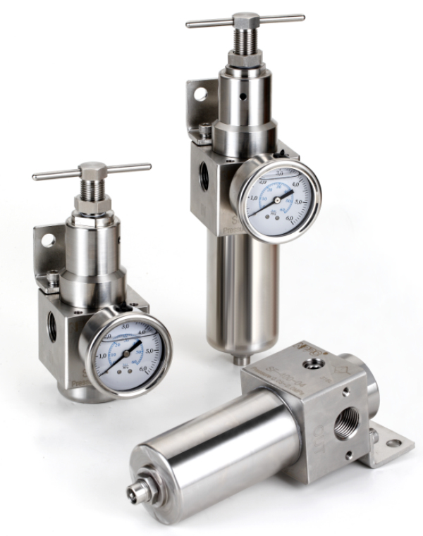 气源处理件是压缩空气质量的最后保证,它由过滤器、调压阀和油雾器组成。过滤器用于过滤空气源中的水分和污物,调压阀 用于调节