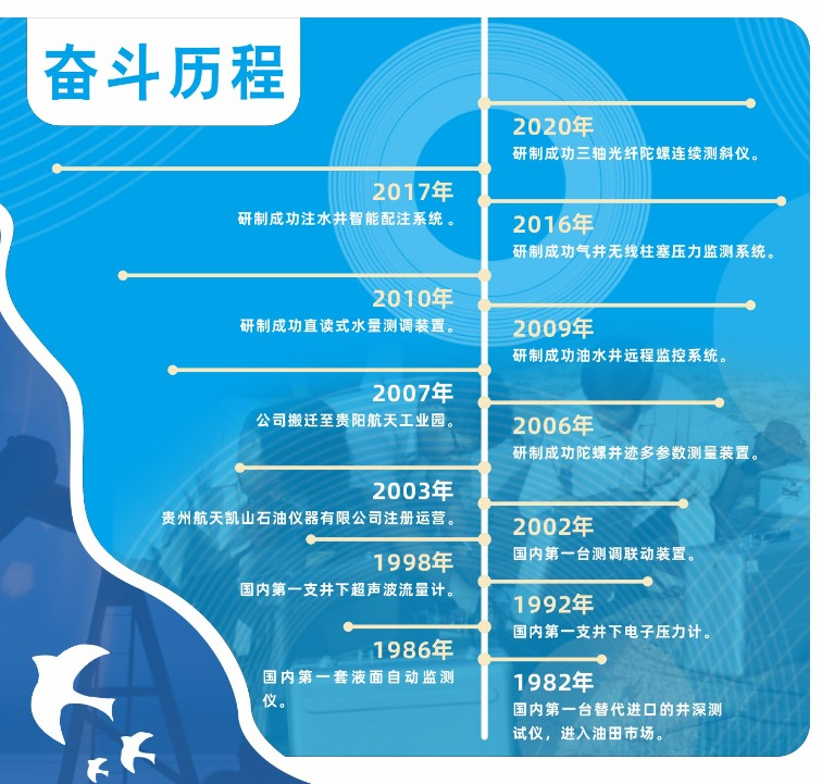 公司自1982年以来,先后研制生产了我国第一台替代进口的井深测试仪、第一支电子存储式井下电子压力计、第一支井下超声波流量计。近年来,公司紧跟油田客户需求,相继研制开发出注水井智能配注系统、集成式分注系统、CO2驱智能分注、产出井智能分采系统、MEMS陀螺测斜仪、射孔陀螺仪、井下作业质量监测系统、智能柱塞控制系统等新产品。发展至今,公司已形成智能分采分注、智慧油田、陀螺测井、气井测控、工业外骨骼机器人五大类别上百种型号产品,覆盖油气勘探与生产领域,拥有核心专利200余项。