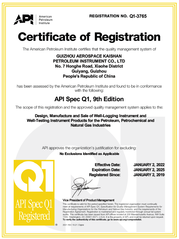公司拥有API Q1、GB/T19001质量管理体系认证,多次荣获省级以上科学技术奖项,多项产品获国家重点新产品和贵州省名牌产品等荣誉称号。公司在中石油、中石化、中海油的各大油田设立了10个技术服务中心,提供“7X24h”快速服务。