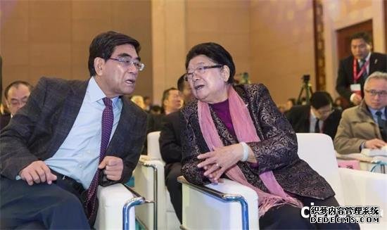 第十届全国人大常委会副委员长顾秀莲(右)与全国政协常委、中国石油化工集团公司原董事长、党组书记傅成玉(左)在第九届国际石油产业高峰论坛现场交流