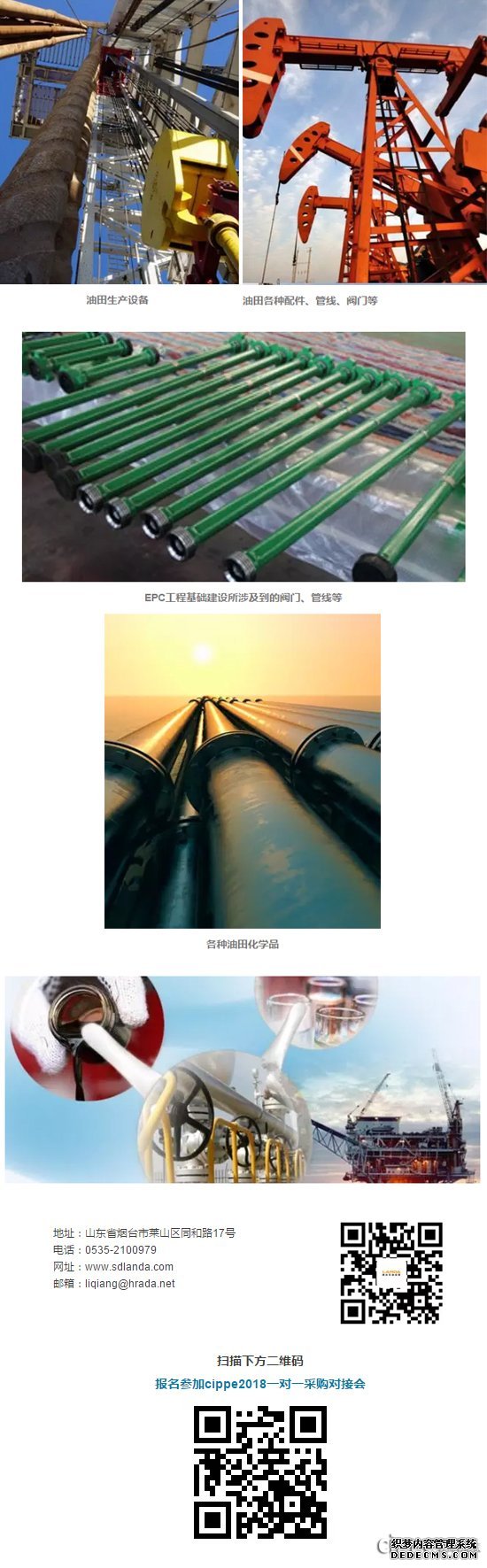 3月27-29日,山东澜达石油设备有限公司将参加在北京·中国国际展览中心(新馆)举行的第十八届中国国际石油石化技术装备展览会(cippe2018),展位号:W3210。