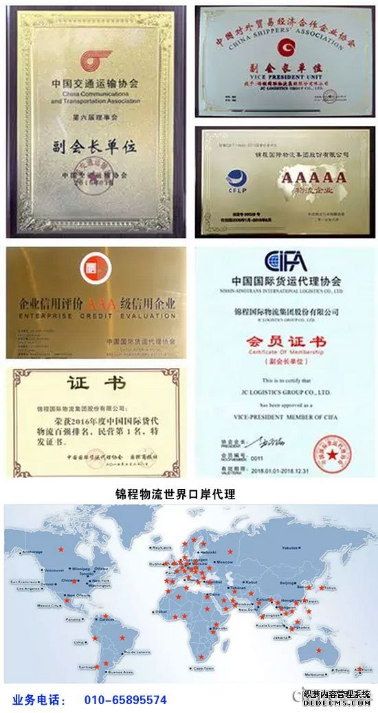依托锦程物流全球服务中心——行业24小时呼叫中心(400-020-5556)和电子商务网站(www.jc56.com),通过分布在大连、天津、青岛、上海、宁波、厦门、广州、深圳、杭州、北京、哈尔滨、南京、长沙、武汉、重庆、西安、石家庄、苏州、连云港、成都、东莞、香港、沈阳、郑州、合肥、呼和浩特、营口等沿海重要口岸及内陆城市的区域物流服务中心及物流服务公司,为客户提供网络化和本地化相结合的专业物流服务。通过与中远、马士基、地中海航运等国际航运业巨头开展深层次合作,形成了拥有全球600家分支及海外代理机构的无缝营销网络。通过资源整合,进行集中采购,实现在线受理、在线成交、在线结算和在线维护,为客户提供专业、全面、全航线、低成本、高效、标准化的物流解决方案和在线物流服务,目前在全球拥有超过800万家企业客户。