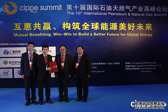 全国政协常委、中国石油大学校长张来斌(右二)颁发“cippe展品创新金奖”奖项