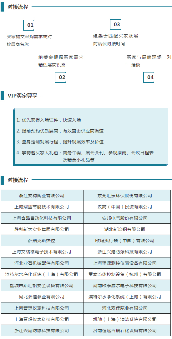 如果您是来自石油化工行业,如果您是防爆、固废处理、紧固件、通用流体等设备的采购人员、工程师、管理人员,并对石油化工相关设备有采购需求。如果您是经销商、代理商,想要寻觅合作机会。请即刻参与采购对接会,成为我们的VIP买家!