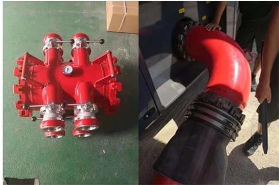沟槽式接口材质为高强度6061铝合金,采用模锻工艺生产,表面经过硬质阳极氧化处理,具有重量轻、强度高、易装配等特点,中间连接采用标准的沟槽式卡箍连接。