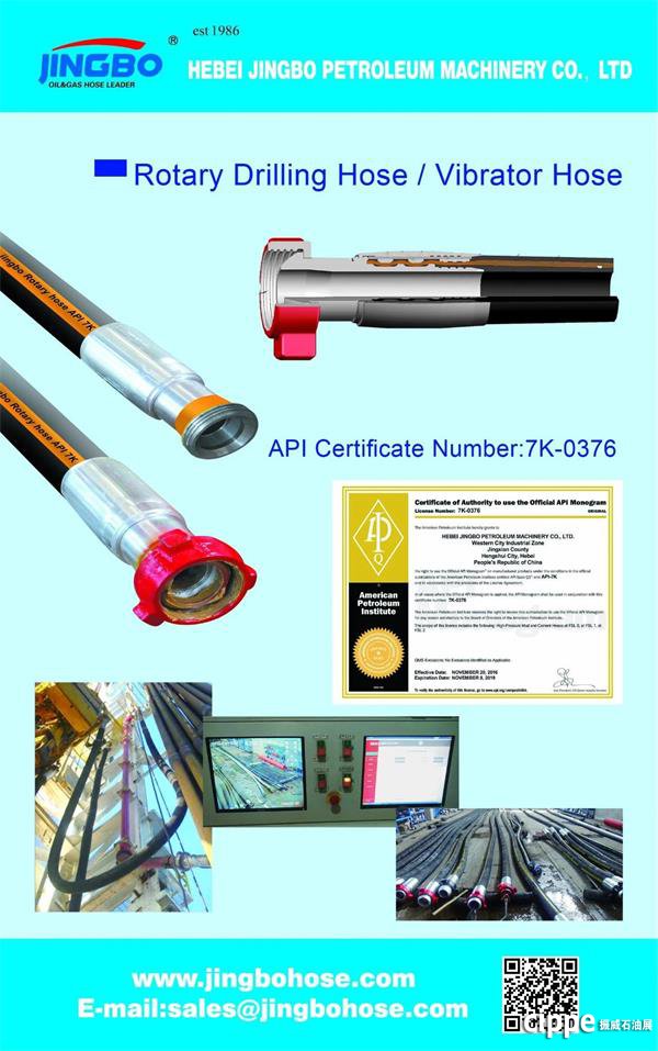 据了解,景渤石油从2009年起开始参展cippe,已经连续参展10年,2019年将是其第11次亮相cippe,展位号E2058。此次展会主要展示的产品系列有,API 7K 高压钻井水龙带、API 16C 柔性铠装节流压井管线、API 16D 高压耐火隔热BOP井控专用软管、高压由壬,法兰, 弯头等。