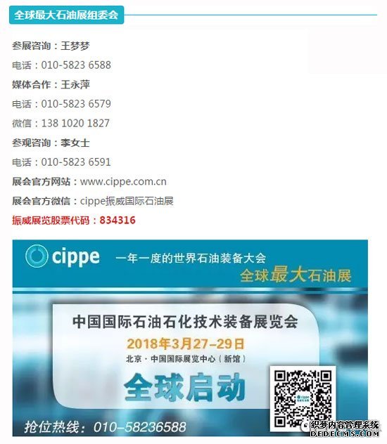 2018年3月27日至29日,一年一度的世界石油装备大会——第十八届中国国际石油石化技术装备展览会(cippe2018)将在北京•中国国际展览中心(新馆)盛大开幕,目前展会招展工作面向全球启动。