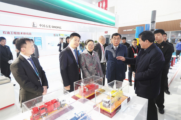 展会期间,第十届全国人大常委会副委员长顾秀莲,第十二届全国政协副主席马培华到中国石化展台进行参观指导。石化机械副总经理谷玉洪代表公司热情接待,并就油气勘探开发装备一体化解决方案、页岩气田勘探开发,以及科研重大专项等方面情况作了介绍。