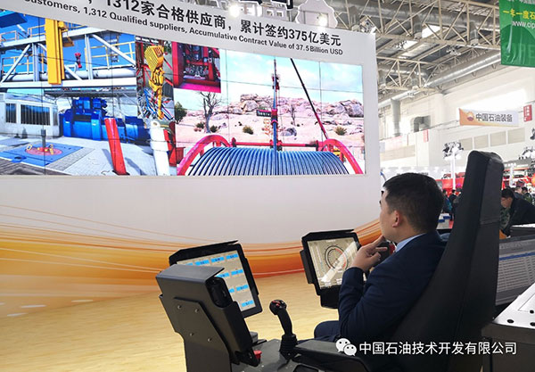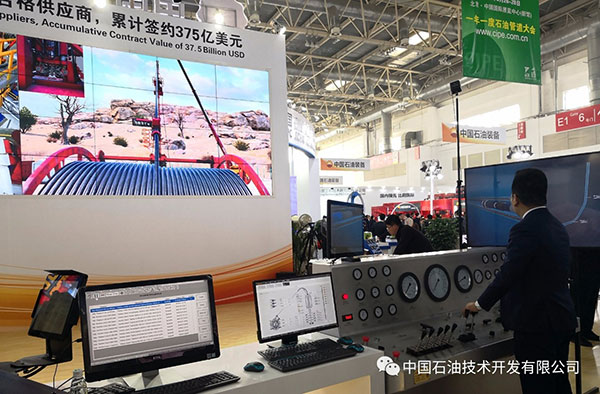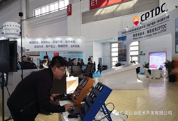 技开人用忠诚激情和敏锐专业吸引了国内外同行的驻足交谈。CPTDC的展区更像一位沉默的发言人,自带光环与磁场,向八方友人展示公司创业发展史、优秀业绩和综合实力,11块展板有图有真相,全面展现了公司在国际市场的一体化综合服务能力。展会现场利用MR、VR技术真实再现了钻机模拟培训和连续油管作业流程,令人叹服。