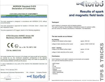 Torbo湿喷砂系统(一种将磨料浸泡在水中然后喷射出的开放式湿喷砂的装备),由德国制造,能保证在恶劣的工作条件下为客户提供可靠性和耐 用性而持续稳定的高质量产品。torbo在世界范围内被称为现代爆破技术的缩影,其特点是具有普遍的应用性能和极好的成本节约性。