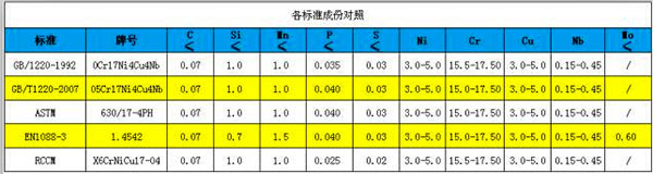 现针对17-4PH的标准牌号、成份及热处理等级进行一个整理,以供大家参考。